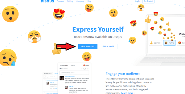- Pergi ke situs Disqus dan klik Get Started.