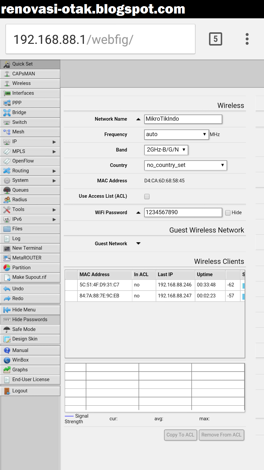Ikuti langkah-langkah berikut ini untuk mengakses dan mengkofigurasi mikrotik di android melalui webfig.